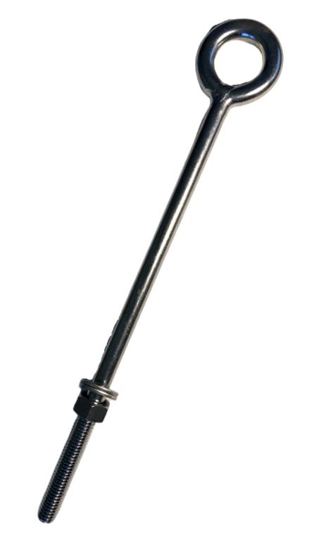 This is for one (1) quality marine grade stainless steel (AISI 316) eye bolt short thread. Each bolt is laser etched with the grade of 316 and the imperial size. The eye bolts are made in the imperial style of 1/2" Whitworth (1/2"-12 pitch). Each eye bolt comes with two imperial washers and one imperial nut. The length measurement is the total length of the eye bolt (8"). The threaded section is 3" long. Not to be used for overhead lifting. AISI 316 stainless is a premium grade of stainless and is considered by many to be best in class. 316 stainless is corrosion resistant and very durable even in the harshest of conditions. Breaking Load of 9150lbs